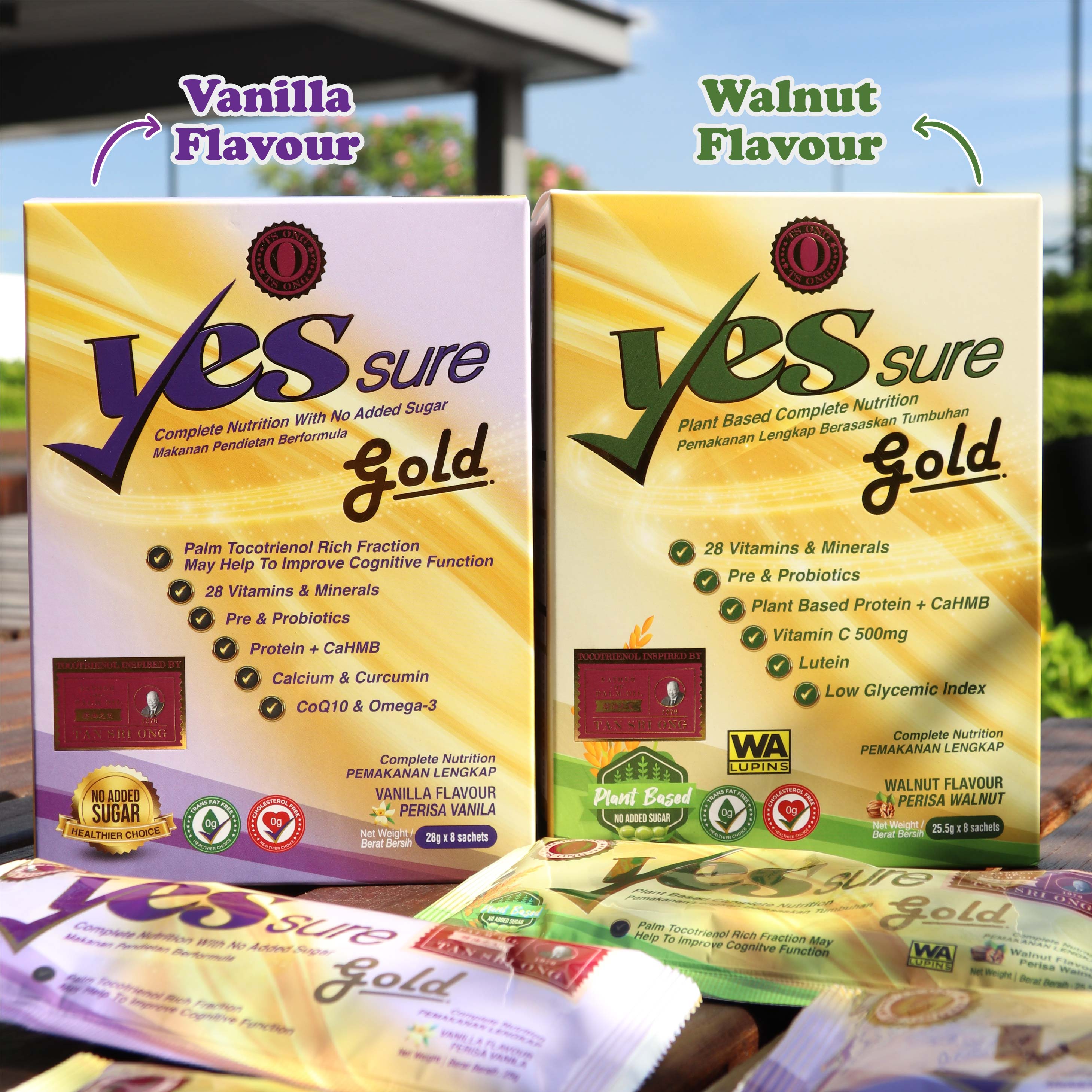 YesSure Gold Classic Vanilla Flavour Mix four (4) scoops or 51g of YESSURE GOLD COMPLETE NUTRITION with 195ml of lukewarm water. Stir or shake vigorously. Alternatively, YESSURE GOLD COMPLETE NUTRITION can be incorporated into everyday food (such as cereal, porridge, soup) or your favourite beverages β warm or cold. _________________________________________________________________ YesSure Gold Plant Based Walnut Flavour Mix three (3) scoops or 51g of YESSURE GOLD PLANT BASED COMPLETE NUTRITION with 195ml of lukewarm water. Stir or shake vigorously. Alternatively, YESSURE GOLD PLANT BASED COMPLETE NUTRITION can be incorporated into everyday food (such as cereal, porridge, soup) or your favourite beverages β warm or cold.